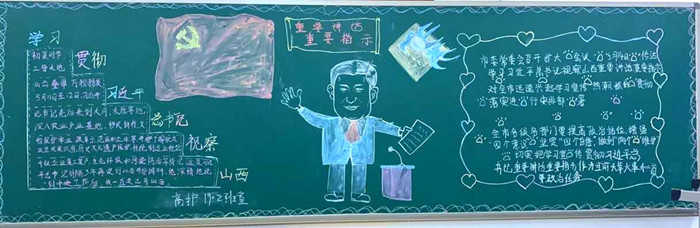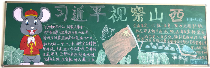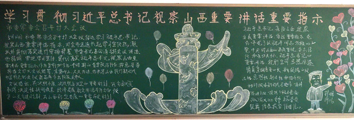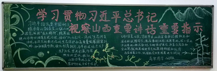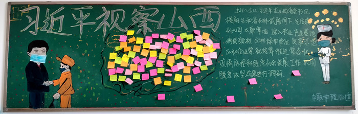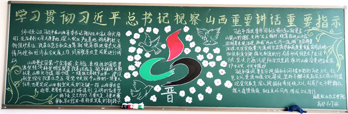 5月11日至12日,中共中央總書記、國家主席、中央軍委主席習近平來到山西考察工作,一句句問候、一聲聲叮囑、一份份囑托激蕩起山西人民重整行裝奮勇向前的磅礴力量。近日,醫學護理系的學子們,以“學習貫徹習近平總書記視察山西重要講話重要指示”為主題制作了39塊黑板報,同學們巧心構思,精心制作,以這種方式深入學習貫徹習總書記視察山西重要講話重要指示,以實際行動安排好疫情常態化形式下的返校后學習生活,保證學生在此期間持續成長進步。