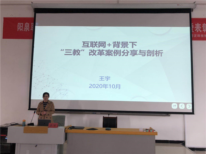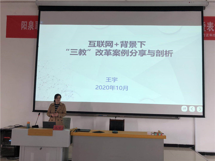 為進(jìn)一步提高我院教師在三教改革和課程思政中的理論水平及實(shí)踐能力,適應(yīng)信息化教育教學(xué)的潮流,近日,我院有幸邀請(qǐng)到了山西工程職業(yè)學(xué)院電氣自動(dòng)化專(zhuān)業(yè)的王宇副教授,為我院全體教師作了以“互聯(lián)網(wǎng)+背景下的三教改革案例分享與剖析及課程思政內(nèi)容開(kāi)發(fā)”為主題的講座。全院共計(jì)約150名專(zhuān)任教師到場(chǎng)聆聽(tīng)。講座由我院王海平副院長(zhǎng)主持。